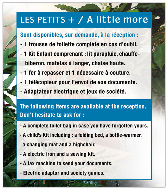 Réception: Semaine 7H00 / 22H00 Week-end et jours fériés 8H00 / 22H00